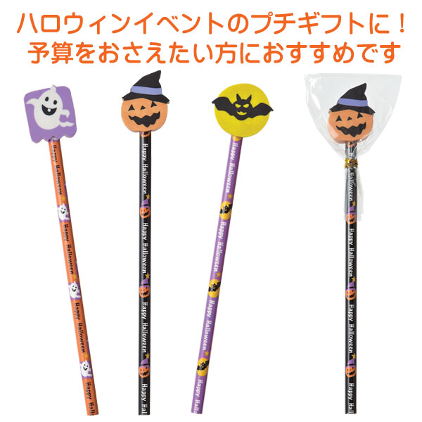 ※ハロウィンでおなじみのお化けやかぼちゃの消しゴムが付いたかわいい鉛筆です。