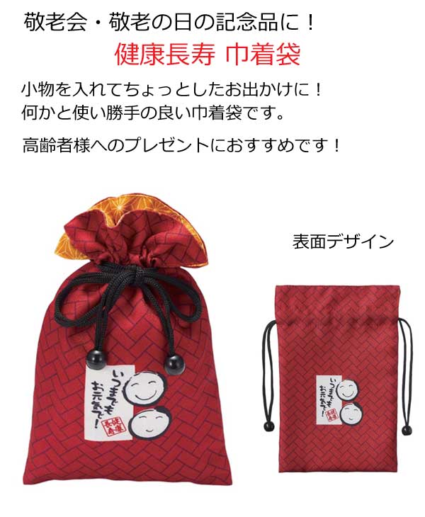健康長寿を祈願したメッセージが入った巾着袋です。